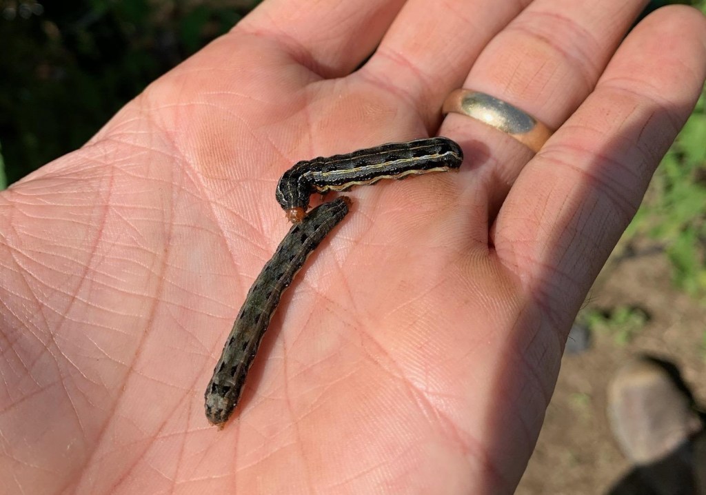Zack Snipes reports, “Hide ya collards, hide ya tomatoes, they eatin’ everything! The Southern Armyworm is wreaking havoc on crops in the Lowcountry. The Southern Armyworm is a heavy feeder on a wide range of crops. They are dark in color, with yellow to cream colored horizontal lines and a reddish/orange head. If inspected closely, one will find a yellow “Y” shape on their head. I see this pest in fields with a variety of crops as well as weedy field borders. We have a full offering of insecticides to battle this pest but remember to rotate insecticides each time you spray. We are also finding some Tomato Yellow Leaf Curl Virus (TYLC) in tomato. This virus is transmitted via the whitefly. Strawberry cut-offs and plugs are going in. Be sure to inspect roots and crown before planting. Give me a shout if you need an extra pair of eyes to check them out.”