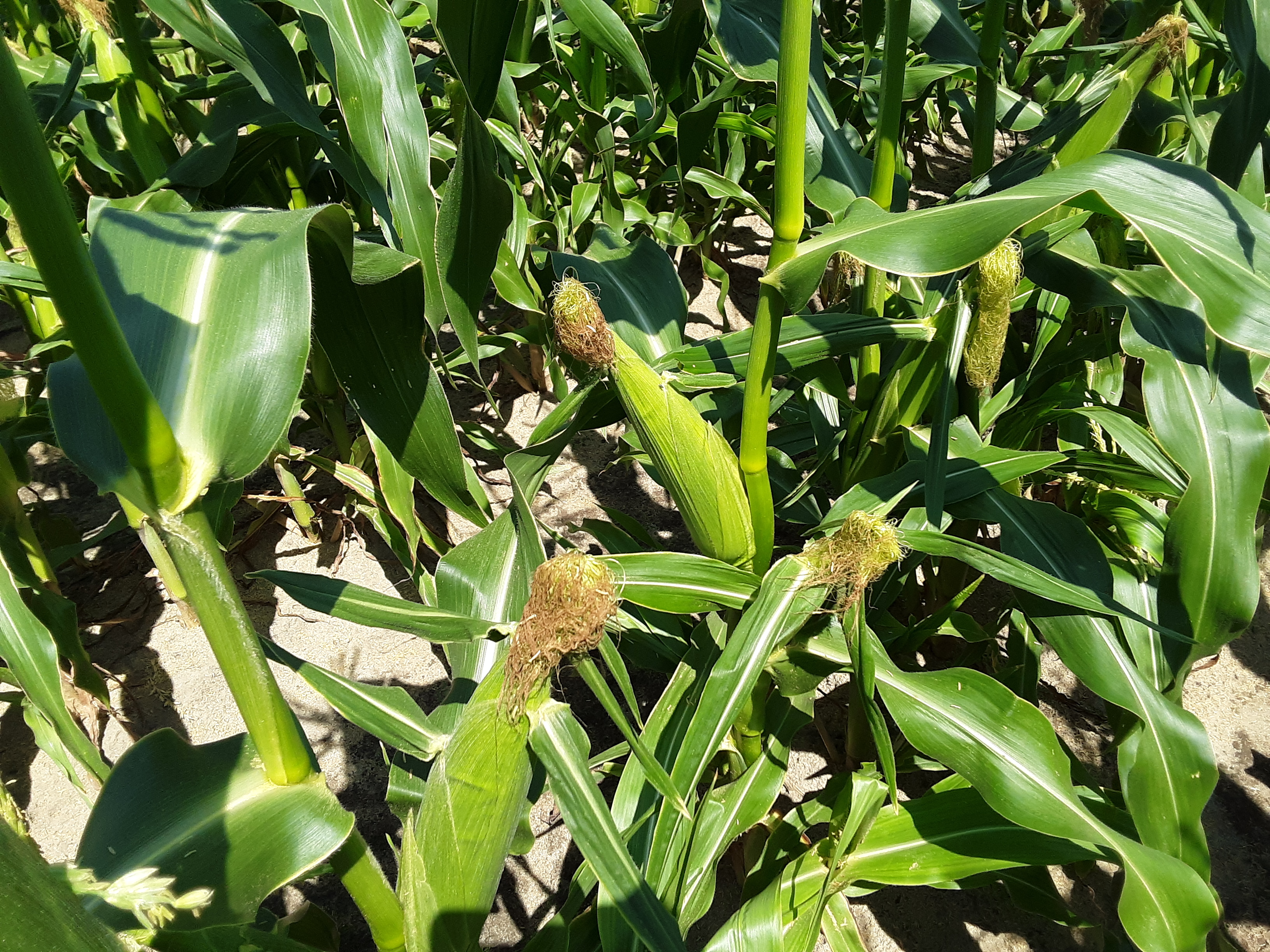 Justin Ballew reports, “This past week was hot and dry. It felt more like July than May. It’s been over two weeks now since we’ve had any rain and irrigation systems are running a lot. In larger fields with overhead irrigation, we are seeing some wilting where the pivots aren’t getting around fast enough. Drip irrigated crops are looking good. Silks are starting to brown on the earliest planted sweet corn. Blackberry picking will begin soon and muscadines have begun blooming.