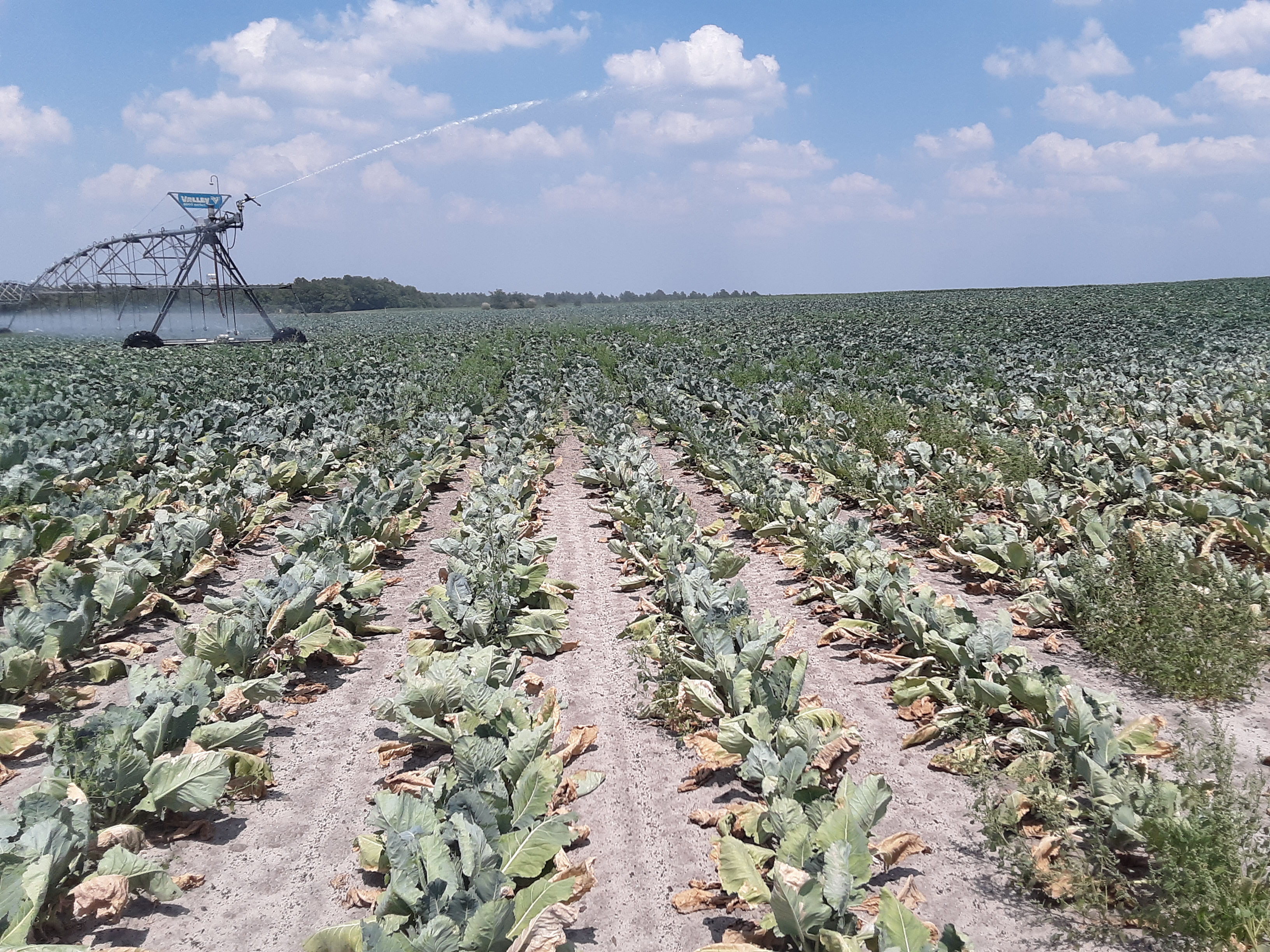 Justin Ballew reports,”Last week was another hot, dry week. It’s been 23 days now since we’ve had rain that amounted to anything more than a brief sprinkle. Irrigation systems are not getting much rest. Squash and zucchini yields have suffered some, most likely because bee activity decreases when it is extremely hot and dry. We have some blueberries that are suffering because the drip system is not able to keep up with the water demand. Other irrigated crops like sweet corn, tomatoes, peppers, and eggplant are looking fine. We need rain pretty badly, though.