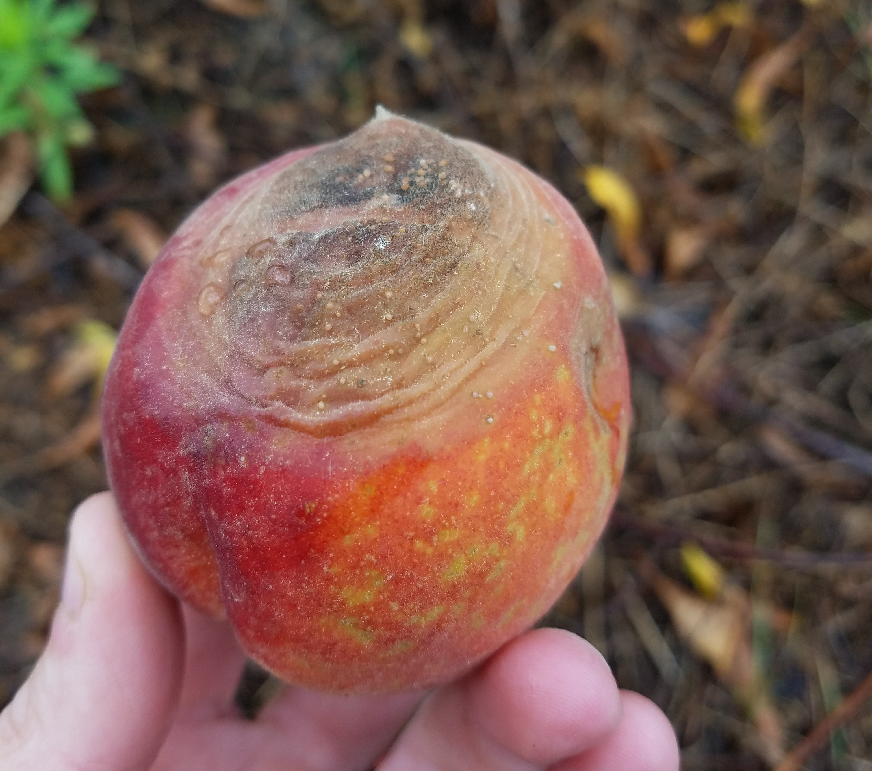 Sarah Scott reports, “After a long period of dry weather, the recent rains have stirred up some cases of anthracnose in peaches and plums. Orchard floor and perimeter management of leguminous hosts and wild Prunus species can help prevent spread of this disease. Refer to the Southeastern Peach, Nectarine, and Plum Pest Management and Culture Guide for chemical recommendations to use pre-harvest. Peaches harvested in the Ridge are starting to get some size on them and are looking good.