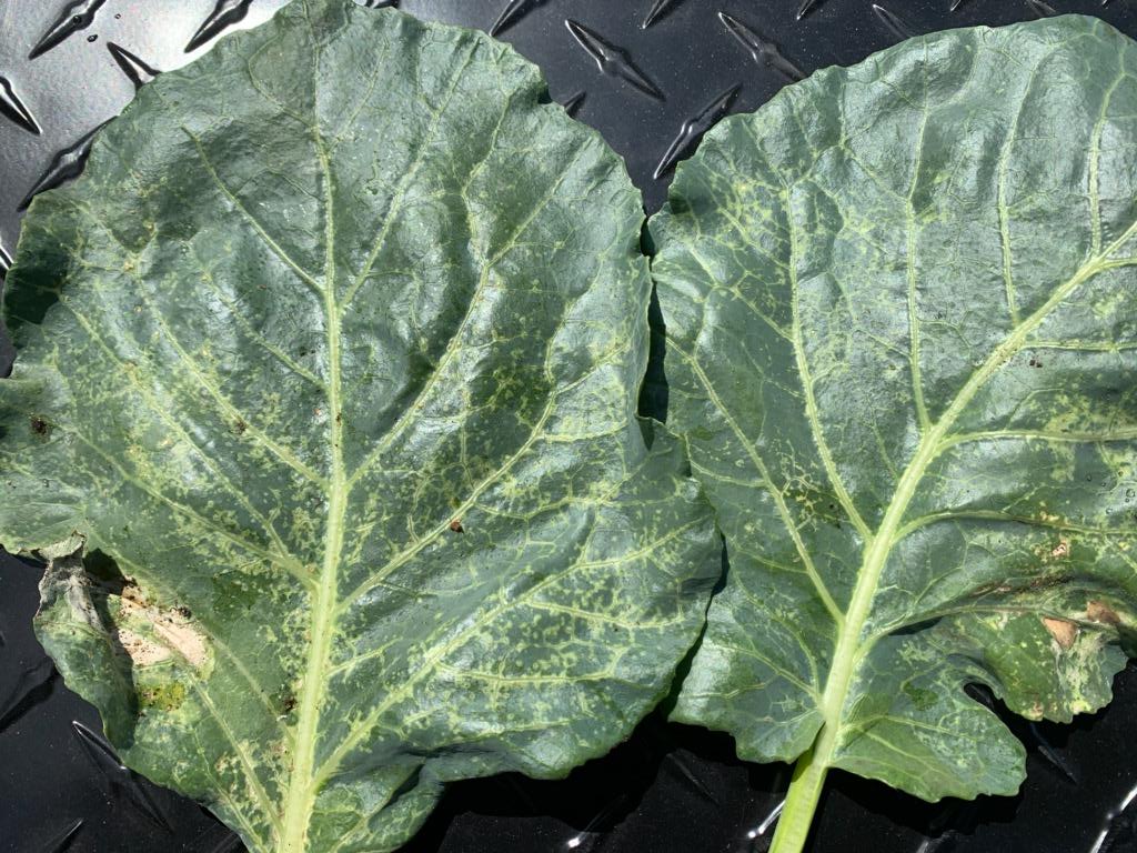 Zack Snipes reports, “Cooler temperatures have finally arrived in the Lowcountry! We had a good bit of rain in certain areas last week and some fields are soggy. I saw lots and lots of silverleaf disorder in squash this past week. Silverleaf disorder is caused by whiteflies. The nymphs of the whitefly feed on the newly developing tissue which causes the upper epidermis of the leaf to separate thus giving the plant a silver appearance. I am still seeing heavy whitefly pressure in most crops throughout the Lowcountry so keep up with spray programs and remember to ROTATE chemistries. For more information on the whitefly, click here.