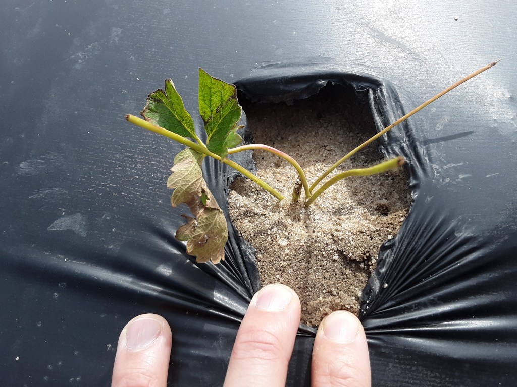 Zack Snipes reports, “This past week was all about strawberries. I visited many farms and saw lots of plastic being laid. I checked many strawberry plants from a multitude of nurseries. Overall the plants look ok this year. I haven’t found any glaringly obvious root or crown rots and very little foliar issues in our plugs and cutoffs. Overall the plants are on the smaller side and I hope for a good fall growing season so they can size up a bit before going into the winter. I saw, on a few farms, issues with calibration and equipment for fertilizer distribution. If you need help calibrating or calculating fertilizer rates, please give me a call. I would be more than happy to come give you a hand. I hate to even mention it but I am already seeing deer tracks in strawberry fields…if you need it…”