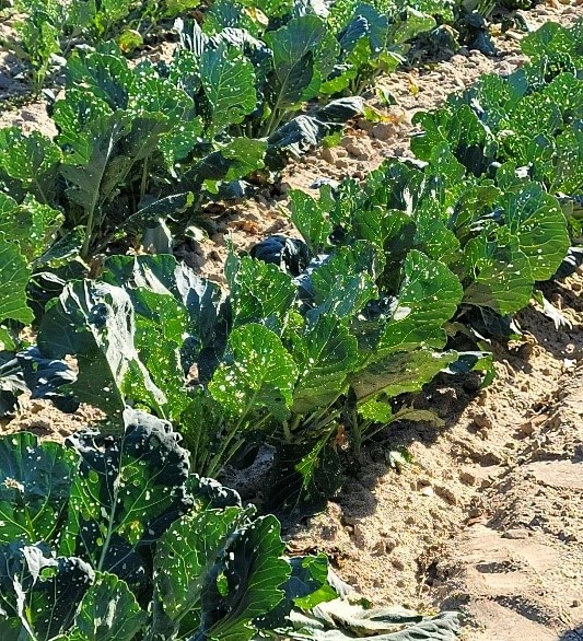 Phillip Carnley reports, “Just like much, if not all the state, it has been exceptionally dry in Orangeburg and Calhoun counties. Despite that, crops are looking good and growing well. Strawberries here are a little behind like much of the state due to late planting, but thanks to being dry, we are not seeing any fungal problems yet. I have seen some death/decline of crowns due to J rooting, but that has not been significant. There have been some flaring populations of diamondback caterpillars in collards exacerbated by the use of broad-spectrum insecticides, which left few to no beneficials in the field. When dealing with diamondback caterpillars, make sure to scout early and often and use more targeted MOA’s to give your beneficial insects a helping hand. One or two applications of the various broad-spectrum insecticides can be detrimental and cause a boom in DBM populations.