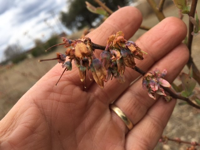 We will still have a blueberry crop, but there is some cold damage present. (R. Last)