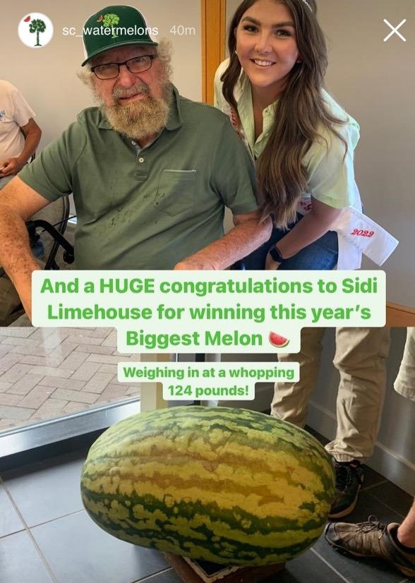 A big congratulations to Sidi Limehouse of Rosebank Farms for winning the SC Big Melon Contest at the Edisto REC Field Day this past Thursday. Sidi weighed in a 124-pound melon. This was the inaugural SC Big Melon Contest, and we hope to keep this event going for years to come. Start preparing for next year’s contest…Sidi says, “I would like some good competition next year.”