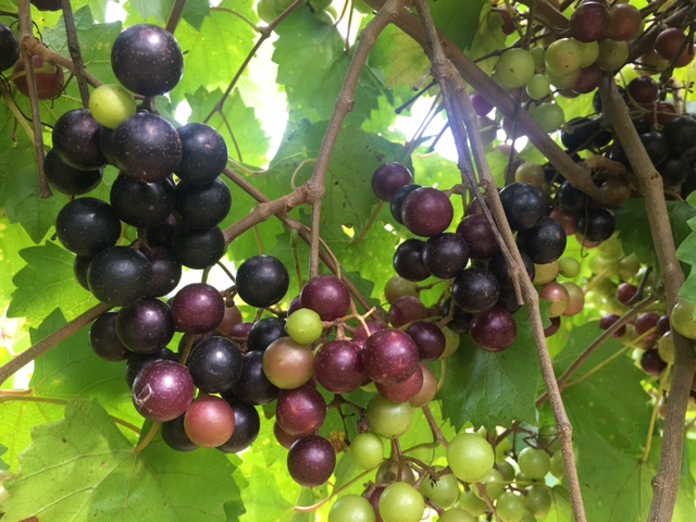 Bruce McLean reports, “Well, it’s starting to smell like muscadine harvest is getting close. Muscadines have really jump over the last week and a half. Noble muscadines are averaging about 60% ripe, with brix in the 16% range on the high end. Carlos muscadines are a little behind, averaging about 30% ripe and showing brix on the high end of 16-16.5%. Doreen muscadines are just starting to color… probably less than 3%. Fruit (for the most part) appears to be smaller than usual. This is likely due to the drier weather that we have had earlier in the season. With the onset of a more rainy weather pattern, fruit size should improve some. If you are not getting some of these showers (from now until harvest), run you irrigation. Along with improving fruit size, the increase in soil moisture will help to concentrate ripe ripening. In Noble, it will allow the fruit to hang a little longer on the vine and be less susceptible to shatter during machine harvesting. Be sure to keep an eye out for fruit rot, as well. After harvest, most growers might want to consider an application of potassium in the vineyard (as KMag, Potassium sulfate or sul-po-mag), especially if your soil reports are showing anything other than a high rating for potassium in your soil. The increase of potassium will contribute to increased root development (come this fall), decreased winter damage and improved health and vigor next spring. Be sure NOT to apply any nitrogen. Nitrogen will spur on vegetative growth… and it is too late in the season to be pushing growth.