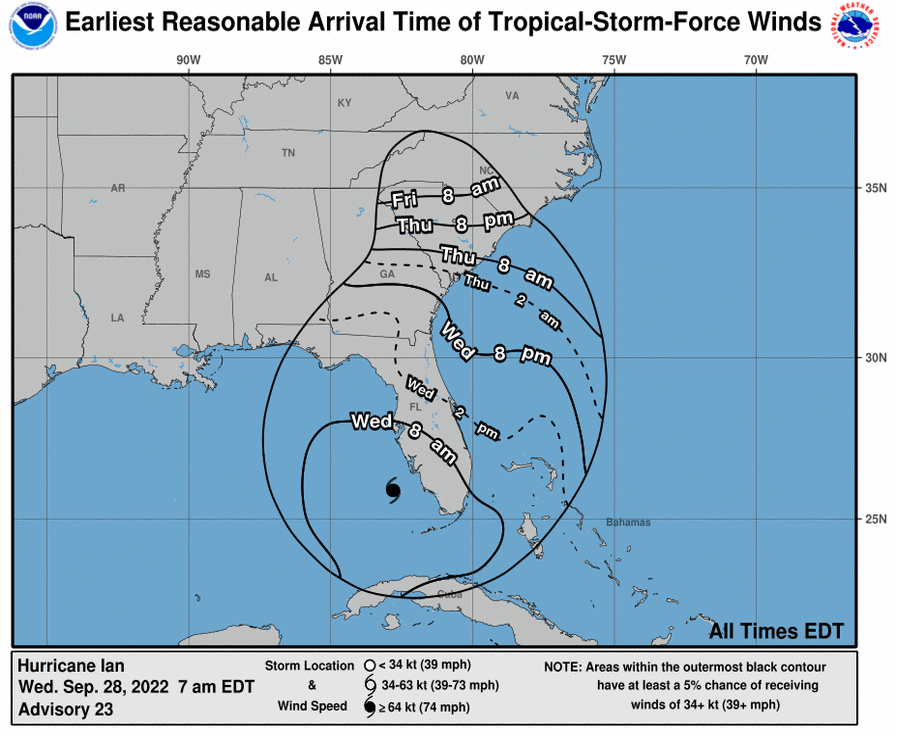 Hurricane Ian is approaching the Southeast and is expected to bring significant amounts of rain and heavy winds to South Carolina over the weekend. The latest forecasts show Ian making landfall south of Tampa, FL, and traveling northeast towards the Atlantic, then northward through western South Carolina.