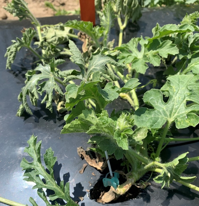This year’s Fusarium wilt experiment includes 3 seedless cultivars, 3 fungicide treatments applied via drip irrigation, and grafting. (This experiment is supported in part by a USDA SCRI grant.) Transplants were set April 5 in a field infested with Fusarium races 1 and 2.