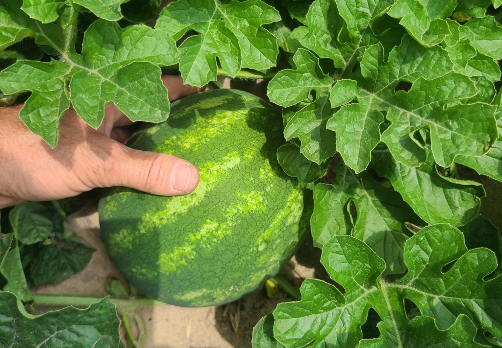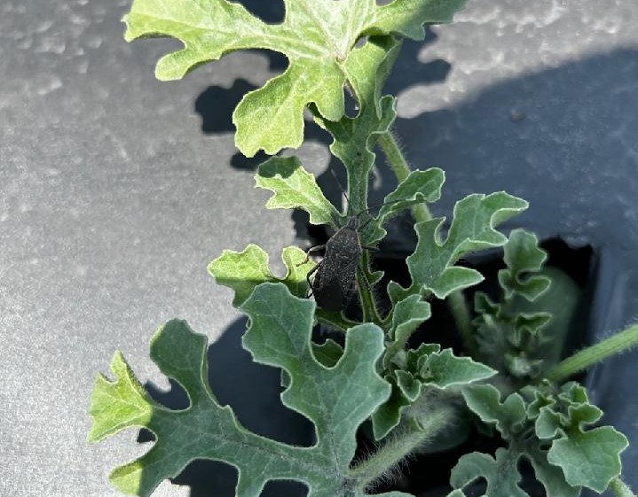- Cucurbits are developing well, with some good fruit set being seen. As a rule of thumb, switch from chlorothalonil to mancozeb once we have softball-sized fruit. Cucurbit downy mildew has been confirmed in butternut squash in Charleston, so now is the time to add a specific downy mildewcide as per the post last week. Watch for squash bugs in cucurbit crops. Damage is seen in squash, cucumbers, watermelon, and cantaloupes. Given the rainfall, low levels of gummy stem blight are being observed in watermelon, which will likely take off. Remember to limit the number of applications of tebuconazole to one per crop, applied early, to help to manage developing resistance. Some excellent products for gummy stem blight include Inspire Super, Miravis Prime. Fusarium wilt is showing up in some fields. The best management options are varietal resistance or grafted plants onto Carolina Strongback.