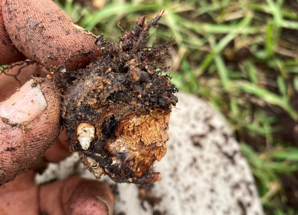 - Warmer weather has caused root rot to show up in some blueberries plants. While digging up a blueberry plant recently, some roots in the bed were growing properly, but heavy clay underneath was allowing root rot in the center of the crown to move up into the stem tissue, causing collapse.