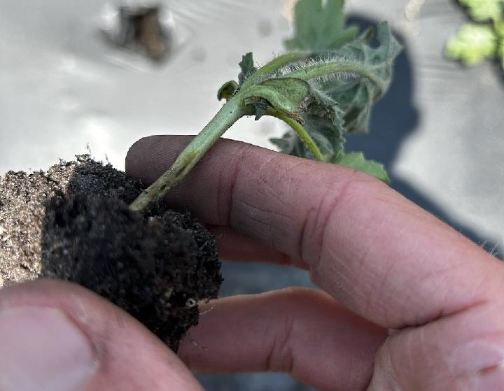 - I also found ant damage on young melon transplants (tunneling into the stem). The plant will wilt and collapse.
