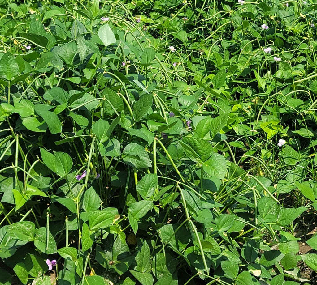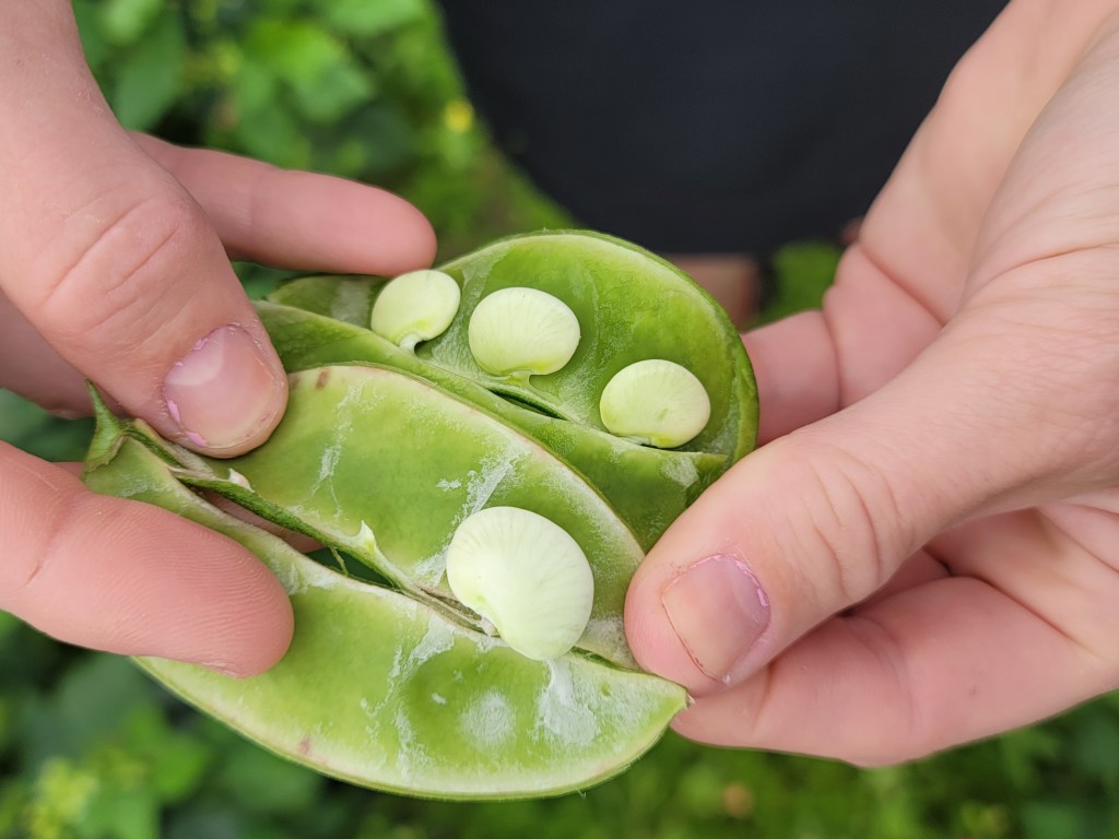 - Beans and peas are just coming into harvest.