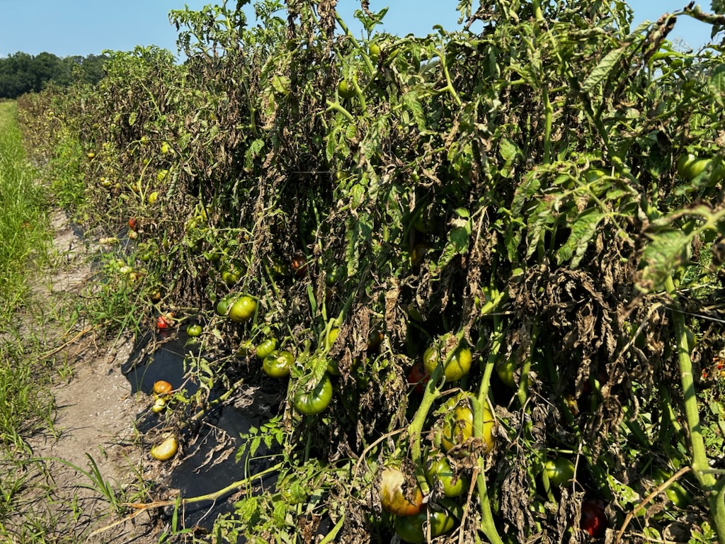 - Tomatoes saw a hit this week with high winds blowing trellises over, but yields have been very good with hardly any disease pressure. The occasional plant with bacterial speck or southern blight has occurred.