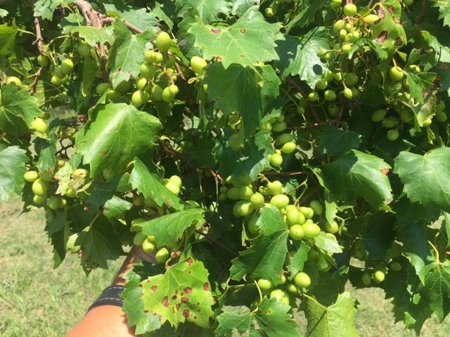 - Muscadines are starting to size up. Fruit set is a little off, likely to dry calyptra and possibly thrips. Fruit sizing is all over the place, even on varieties that usually have concentrated bloom and fruit set. Black Rot is starting to become apparent on leaves, as is Angular Leaf Spot (ALS) in limited vineyards. Most broad-based fungicides are effective at keeping Black Rot under control. Myclobutanil is the best product for ALS control. If left untreated, ALS can cause defoliation, and over time lead to plant decline.