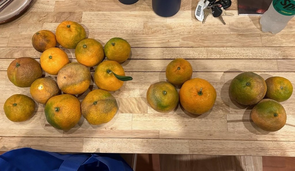 Citrus yields were low this year in CREC trials. From left to right: Owari, Miho, Brown’s Select. (Z. Snipes)