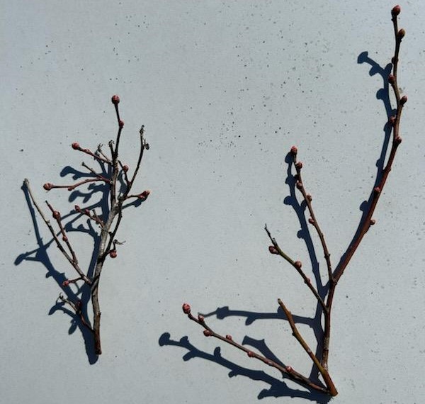 Of these two shoots that were pruned from a blueberry plant, which would have produced larger, higher quality berries?