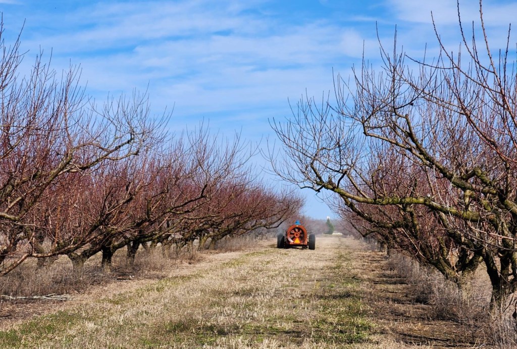 - Currently, we are putting out oil sprays in our peach orchards as well as doing orchard floor management. For the most effective control of scale insects, it is recommended to do two oil sprays, one at dormant stage and another at delayed dormant (beginning of bud swell). Copper can be put out with dormant oil sprays. If using a higher copper rate be mindful of waiting at least 2 weeks between applications to avoid high levels of phytotoxicity. Treatment for lesser peach tree borer can also be applied at the delayed dormant stage.