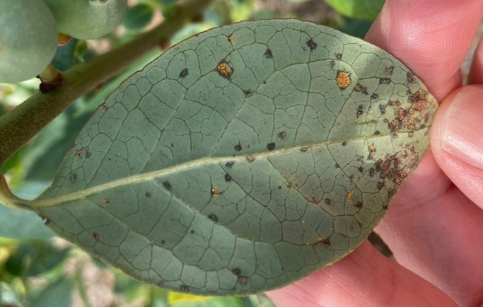- The blueberry crop looks like it will be a good one this year. Look out for Septoria leaf spot and blueberry leaf rust as both have been spotted in this area. The spores of both diseases are spread through rain and wind. Be vigilant with cover sprays and check the pre-harvest intervals and label rates before using products.