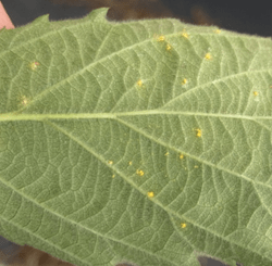 • Blackberry vines are full of fruit, some are already starting to turn, and the first berries should be coming off the vine within a week or two. I have seen some rust on leaves. There are several good products listed in the MyIPM app for control of rust that have low REI and 0 PHI intervals. Remember to rotate MOA’s.