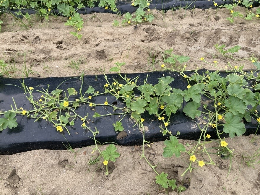 • Early plantings of watermelon are setting fruit. I have seen some downy mildew in cantaloupe, but very low pressure, and growers are doing a good job of treating it early before it gets out of hand. Deer damage continues to be an ongoing issue, and growers have tried many control tactics, but none seem to work for long.