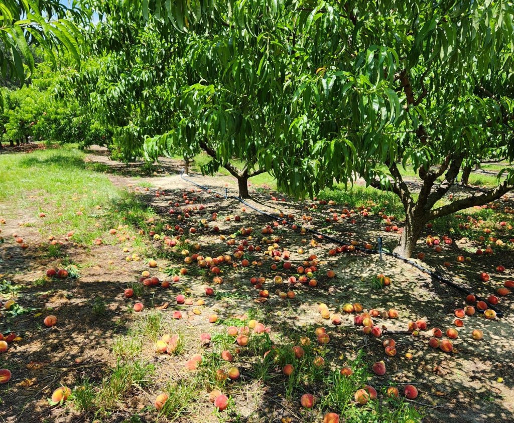 - The peach crop is doing well. We are picking Flavorich still and have started into Carored on some farms. Slight issues with sizing are being reported. We’re still investigating the cause as seeds and pits remain intact. Specialists are looking into potential causes.