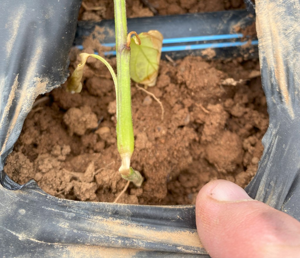 - Watermelons continue to be harvested, but vine quality is on a sharp decline attributed to higher levels of gummy stem blight and other environmental factors. With the rain in the area, I expect to see more split melons in the field and higher disease pressure.