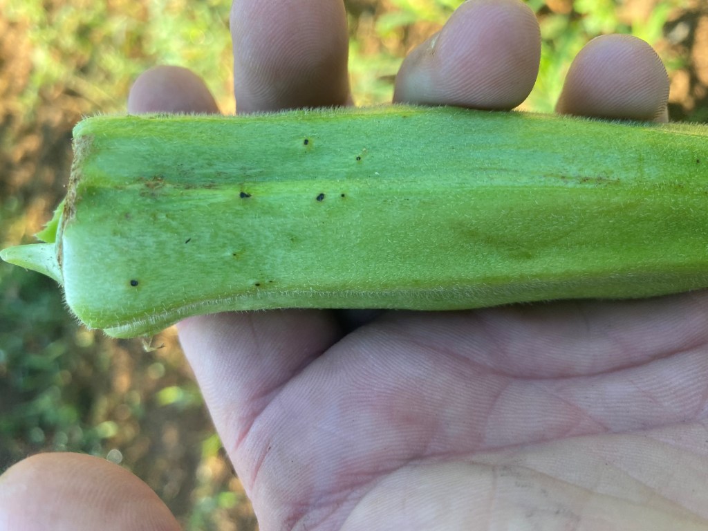 We are having very large stinkbug populations in the Upstate, primarily brown marmorated stinkbugs. They were doing damage to okra on this farm causing bumps on the fruit making it less marketable. Multiple insecticides would control this pest. I like combining a pyrethroid with a neonicitinoid like imidacloprid. It has a 0 day PHI when applied foliarly.