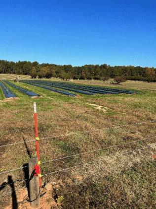 The plasticulture-type field trial (Fig. 1 left) was conducted at Clemson University’s Musser Fruit Research Center (MFRC), Seneca, SC. It was a complete randomized design with four replicate plots per treatment, and each plot contained 20 ‘Albion’ plants (a total of 80 plants per treatment). All treatments were applied at the rates indicated in Table 1 at 100 gallons per acre of water before predicted infection events (based on weather forecasts predicting significant rainfall at temperatures suitable for infection).  The treatments were applied at 150 psi with a shielded 5-nozzle half-circle-shaped boom sprayer built to provide turbulent air movement to increase treatment penetration and eliminate spray drift between plots. We collected data twice a week during April and May in the spring of 2024. As part of the data collection and experimental protocol, all ripe and all diseased fruit were removed from the field at each collection. The data in Figure 2 displays the average of three datasets with highest disease pressure. The datasets with the lowest disease pressure were omitted because none of the treatments differed from the untreated control.