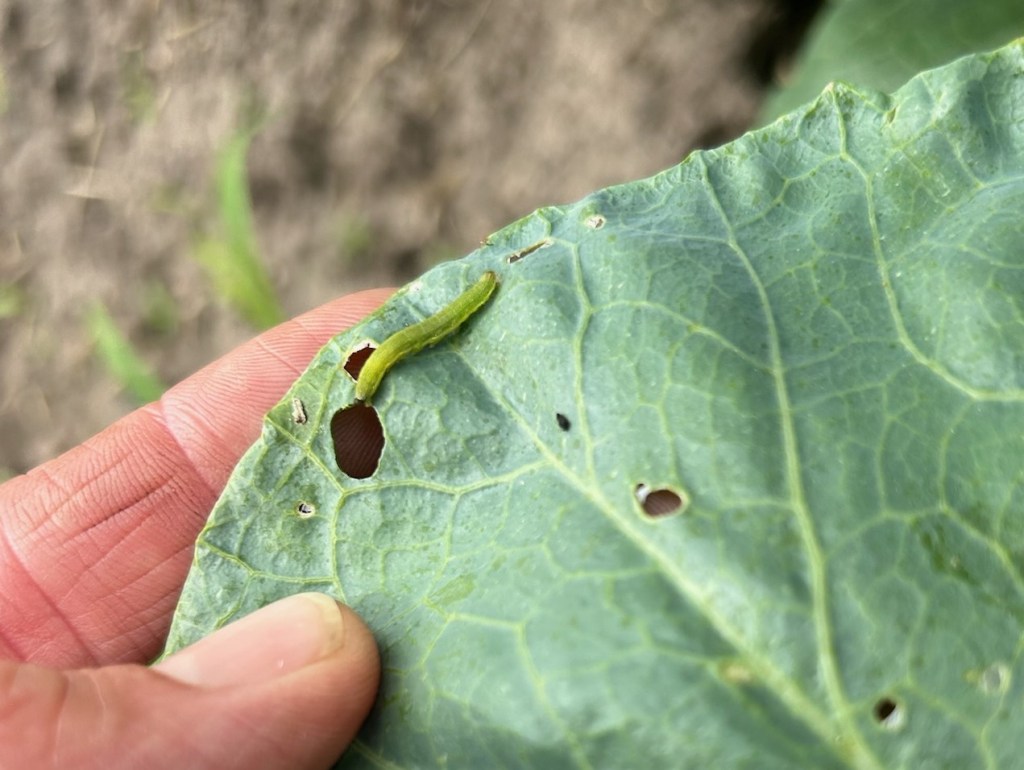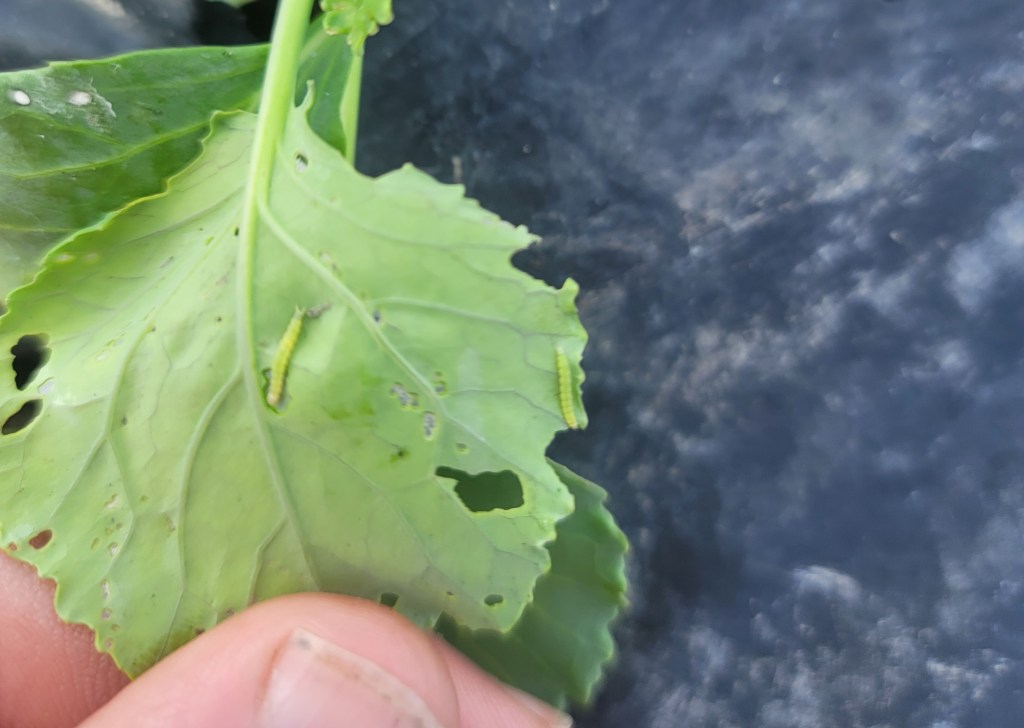 - Imported cabbageworm, banded cucumber beetles, and diamondback moths have all been found on young leafy brassicas.