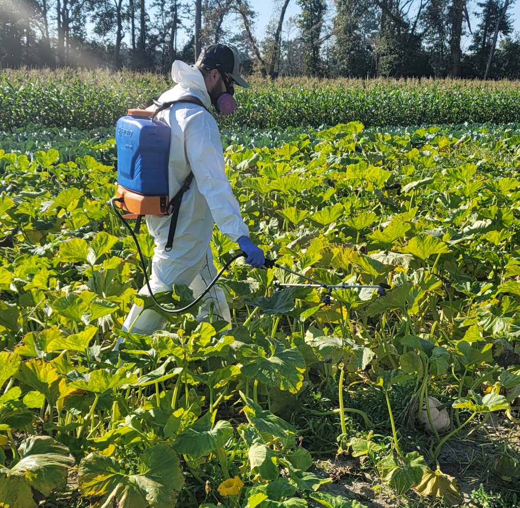 - Cucurbits are on the way out to make room for more fall leafy greens. What cucurbits are left are currently infested with powdery mildew, cucurbit downy mildew, and cucumber beetles. Research Associate Justin Ballew is currently trialing a new chemical for control of cucumber beetles.