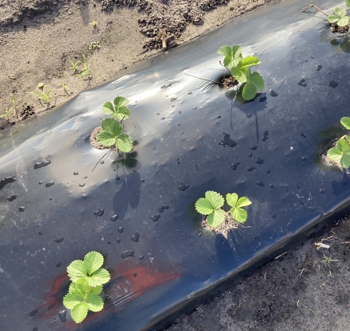 - Strawberry development looks good. I am getting several questions about crow cover usage to promote growth.