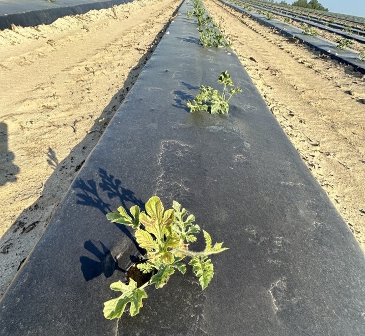 - Many growers are planting a second round of watermelons this week. The first plantings, which are around 2-3 weeks old, are growing nicely. In some cases, vines are just starting to run off the plastic.