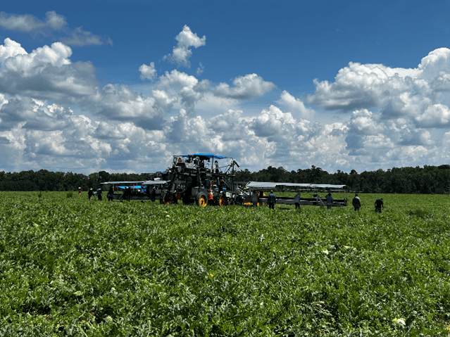 - A variety of crops are being harvested in good volumes right now like tomatoes, watermelon, peaches, blueberries, and peppers.