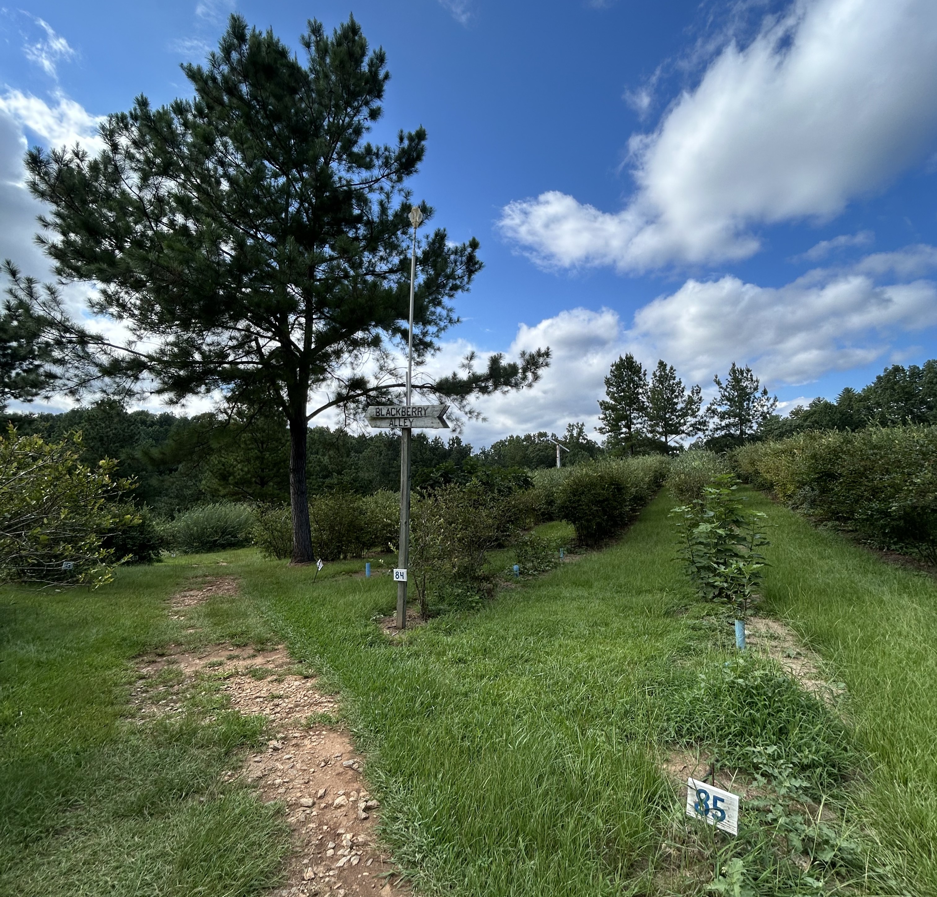 The farm grows blueberries, blackberries, muscadines, figs, and persimmons. You can choose to pick up some pre-harvested berries from the front porch of the farmhouse turned farm store, or go out and pick your own. The farm is open Monday through Friday, rain or shine, during the harvest season. You can also find their products at the Greenville, Greer, and Clemson Farmers’ Markets. You can find updates on their hours and availability of fruits on their website: http://www.thehappyberry.com/.