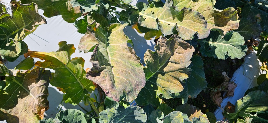 - Brassicas have been displaying some purpling early in the week, which is normal after a rapid cooldown. The purpling was growing out by the end of the week.