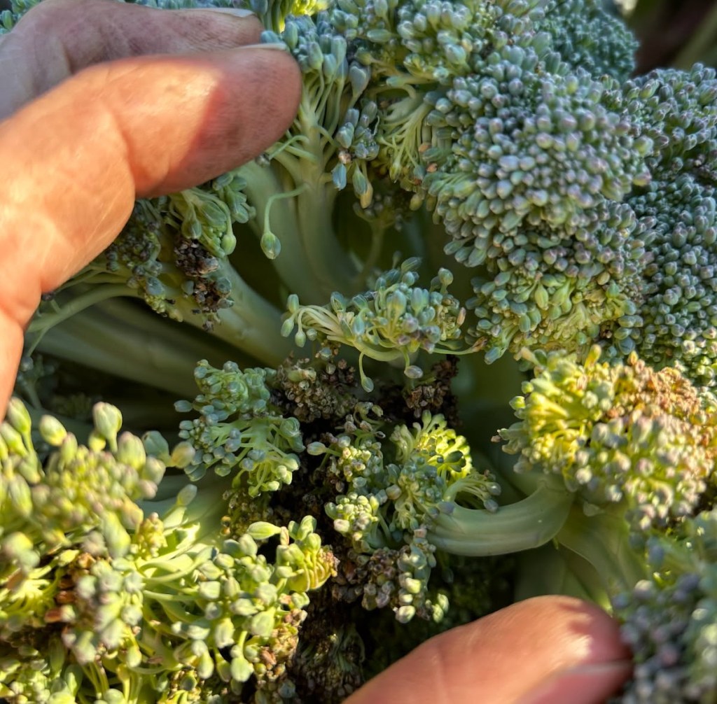 - I am finding a good bit of Alternaria, aka brown bead, in broccoli right now. This is a fungal pathogen and can and should be managed when the broccoli is first pinning out, or beginning its head formation. See this publication from UGA on management.