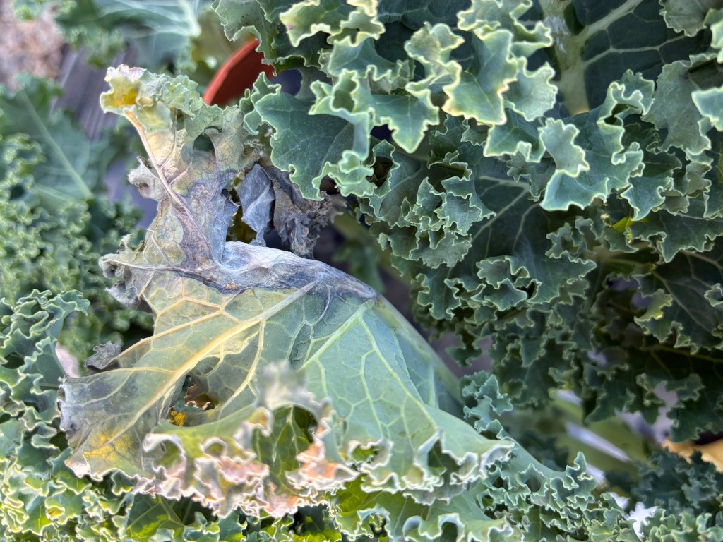 Since then, temperatures have been well below average in the eastern United States. Consequently, symptoms on kale have not spread, and only a few more unsprayed plants became diseased in the meantime. Temperatures below 50°F. are not optimal for white mold. Hold off spraying again until daytime temperatures are above 50°F for a couple days in a row.