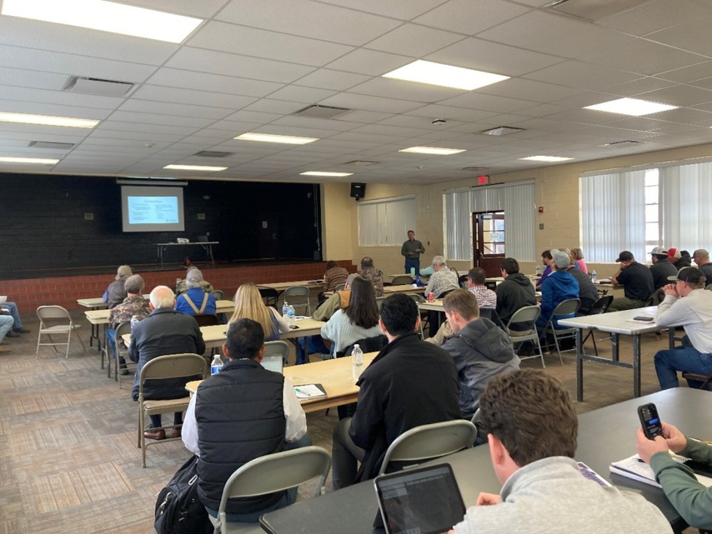 - A statewide pecan production meeting was held in Columbia, SC, on February 25, 2026. The UGA Pecan team, led by Lenny Wells (PhD), the leading pecan research specialist in the southeast, was the invited speakers. The team included Apurba Barman (PhD), an entomologist specializing in pecan and citrus insects, Clemen Olivera (PhD), specializing in pecan and peanut plant pathology, and Andrew Sawyer, UGA extension specialist, who specializes in everything pecan. Topics included pecan nutrients, insect pest management, disease management and weed management. On behalf of Clemson Extension, we are grateful to the speakers, sponsors, and City of Columbia employees for making this event possible. We also thank the pecan growers who took the time and effort to travel and attend this meeting.