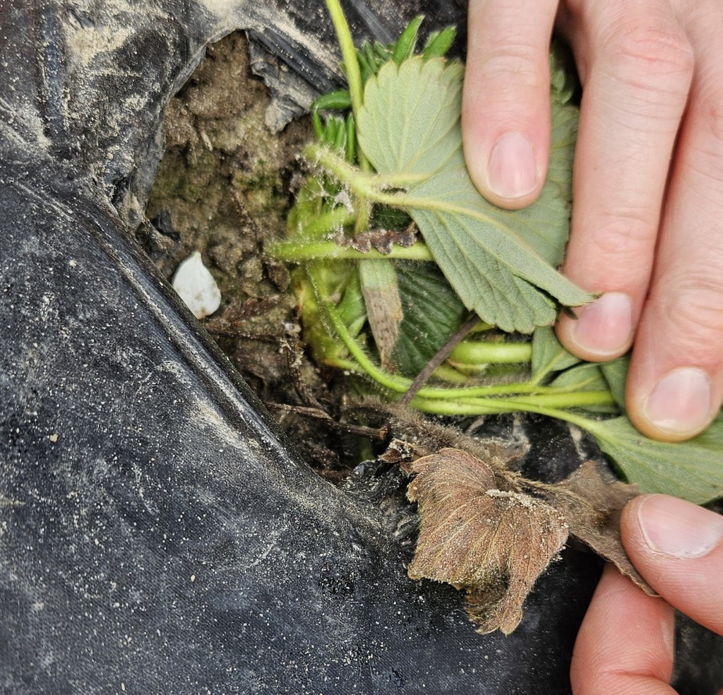 - I would encourage growers to scout strawberries closely for spider mites. They are difficult to see, so take your time and use a 10x magnifier to identify them. I also encourage full-leaf and petiole tissue samples now. The leaf sample will help identify the current nutrient status, and the petiole nitrate sample will help with nitrogen management.