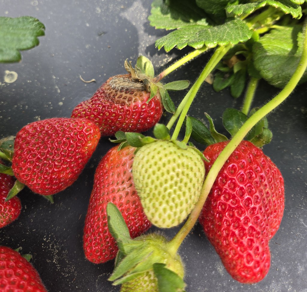 - As strawberries ripen, remove overripe berries to reduce the inoculum of pathogens. I am seeing low incidences of gray mold. Keeping up with protectant fungicide applications, based around thiram (where available), Captan, and the inclusion of Switch can be beneficial.